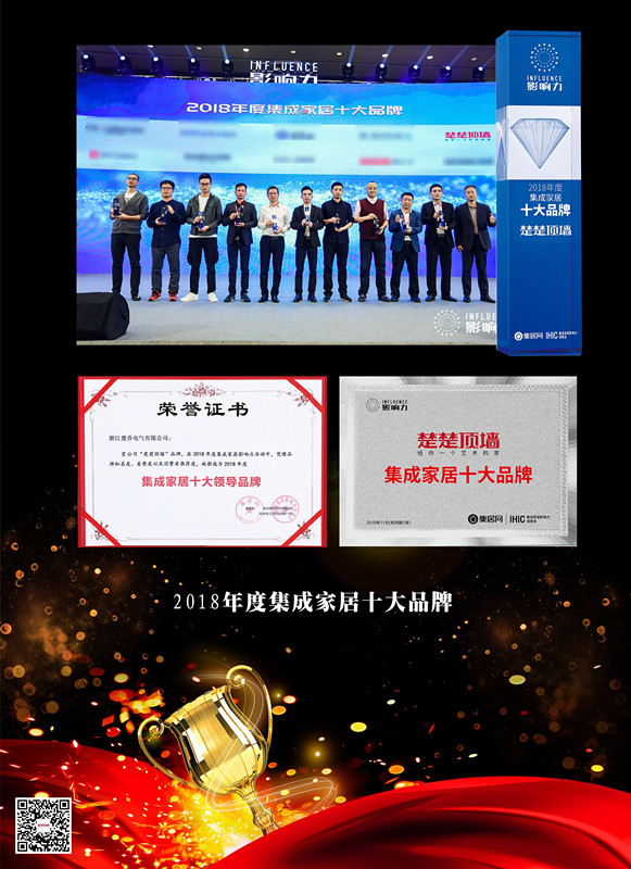 楚楚作为率先进入顶墙行业的品牌,成功斩获行业2018年度“顶墙十大领导品牌”、“集成吊顶十大领导品牌”、“集成家居十大品牌”三大重量级荣誉!